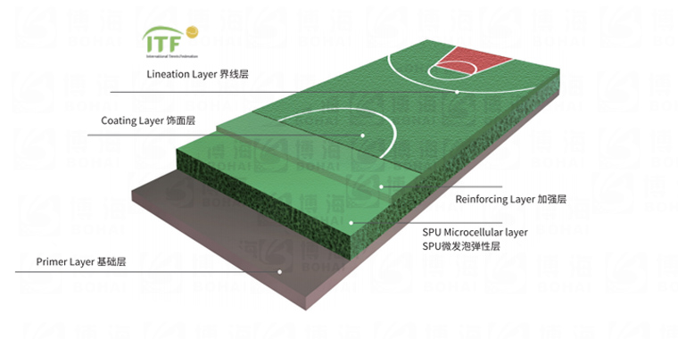 由PU彈性層BH-CS01、加強層和水性面漆耐磨層BH-WB01刮涂組成,該結(jié)構(gòu)具有優(yōu)越物理性能,滿足人體工學的彈力科技,色彩美觀,施工方便、耐候性能強,防滑性好、容易保養(yǎng)的有點。